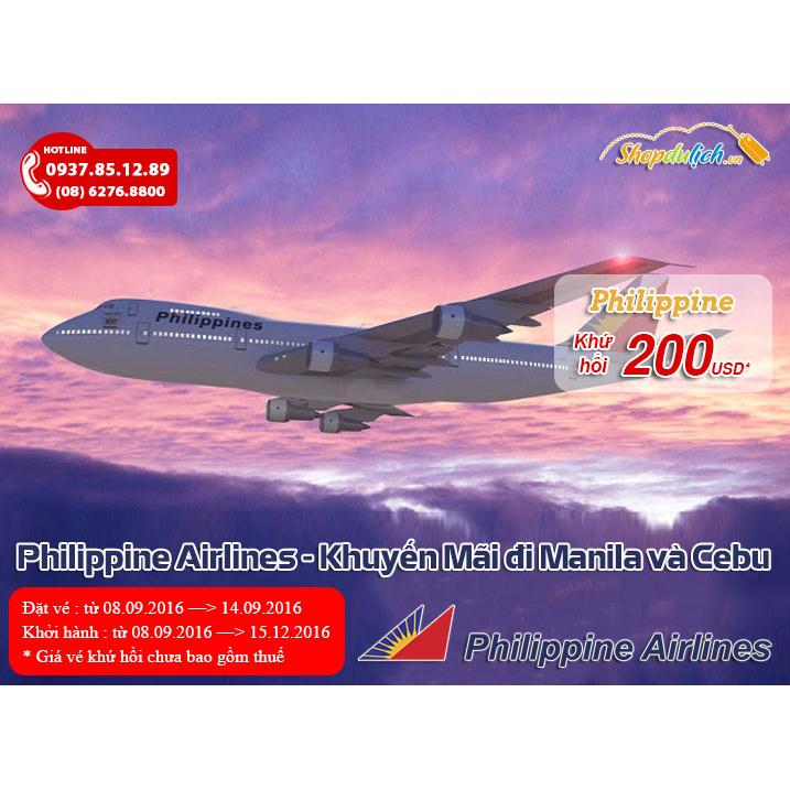 Từ 08/09/2016 hãng hàng không Philippine Airlines Khuyến mại hấp dẫn áp dụng trên các chuyến bay khởi hành từ TP. Hồ Chí Minh đi Manila, CeBu và một số điểm khác (Philippine). Đặt vé ngay hôm nay tại Shopdulich.vn để được hưởng khuyến mãi giá vé rẻ nhất.